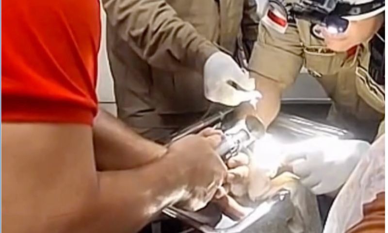 De acordo com informações dos bombeiros, o dedo da criança ficou preso na parte metálica onde é fixado o cadeado do portão. A equipe de resgate foi acionada por moradores e utilizou ferramentas específicas para cortar o material, garantindo a liberação segura do membro.