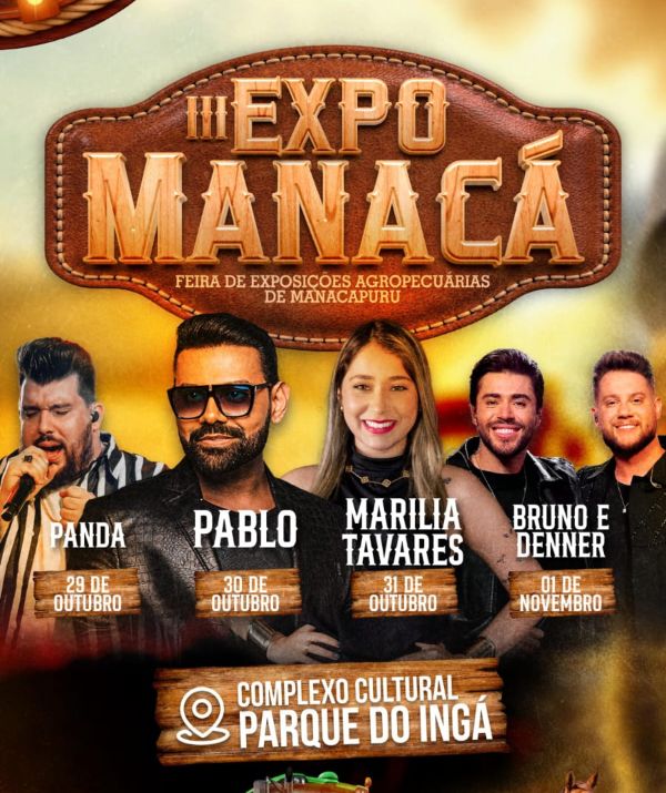 A ExpoManacá 2025 será realizada entre os dias 29 de outubro e 1º de novembro, no Parque do Ingá. O evento contará com atrações culturais e musicais, além de oportunidades de negócios para produtores locais, consolidando-se como referência no setor agropecuário do Amazonas.