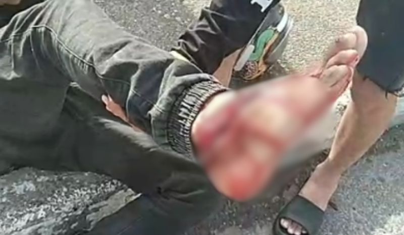 Um motociclista ficou gravemente ferido após uma colisão entre uma moto e um carro na manhã desta quarta-feira (26) na rotatória da Bola do Jorge Teixeira, na Zona Leste de Manaus. De acordo com testemunhas, o piloto sofreu um corte profundo no pé, que ficou parcialmente exposto. A passageira que o acompanhava também teve ferimentos.