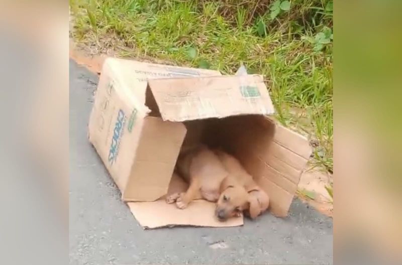 Um vídeo que circula em aplicativos de mensagens mostra três filhotes de cachorro dentro de uma caixa de papelão, colocada às margens da via. Nas imagens, a cadela aparece andando pela estrada acompanhada de outro filhote, enquanto os demais permanecem na caixa.