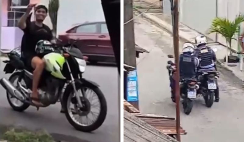 De acordo com as imagens, o furto não chegou a ser registrado oficialmente no momento em que ocorreu. Em um dos vídeos, uma testemunha relata que a chave da moto do policial foi retirada por um jovem que fugiu logo em seguida. Durante a gravação, o homem ironiza o agente, chamando-o de “moscão”, gíria usada para se referir a alguém que vacilou.