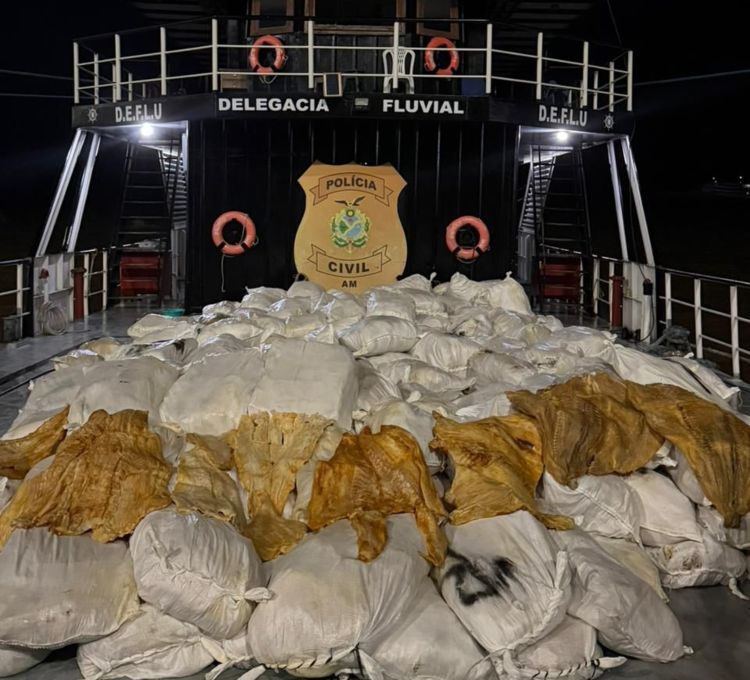 A Polícia Civil do Amazonas (PC-AM) apreendeu 12 toneladas de pirarucu seco durante fiscalização realizada na Base Fluvial Paulo Pinto Nery, na sexta-feira (9), nas proximidades do município de Itacoatiara, a 176 quilômetros de Manaus. O pescado era transportado em uma embarcação que tinha como destino a cidade de Parintins. Dois homens foram detidos por suspeita de crime ambiental.