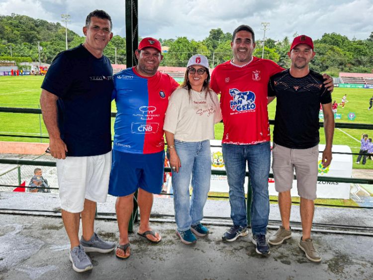 Ao lado do deputado estadual Cristiano D’Ângelo, do amigo Beto D’Ângelo e de torcedores manacapuruenses, Valciléia vibrou com mais uma grande atuação do Tubarão do Norte, que mostrou força em campo e venceu por 2 a 0.