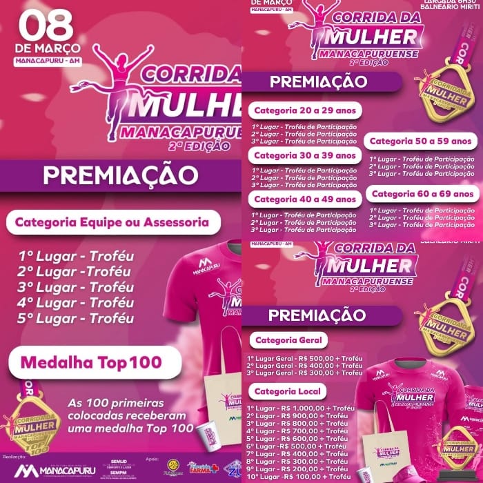 A Corrida da Mulher Manacapuruense vai reconhecer o esforço e a superação das participantes com uma premiação diversificada: