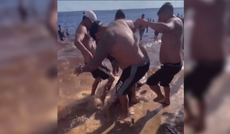 Imagens registradas por frequentadores da praia e compartilhadas nas redes sociais mostram o início da confusão dentro do Rio Negro. Segundo testemunhas, o tumulto começou assim que familiares da criança e pessoas próximas perceberam o suposto abuso.