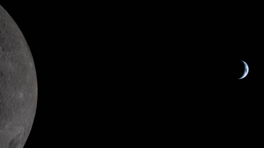 A Nasa divulgou, na manhã desta terça-feira (7), registros inéditos da missão Artemis II, que leva quatro astronautas ao redor da Lua. Entre as imagens, destaca-se o momento conhecido como “nascer da Terra” (ou o “pôr da Terra”, sob a perspectiva da nave), capturado pela primeira vez por uma missão tripulada a partir do lado oculto do satélite.