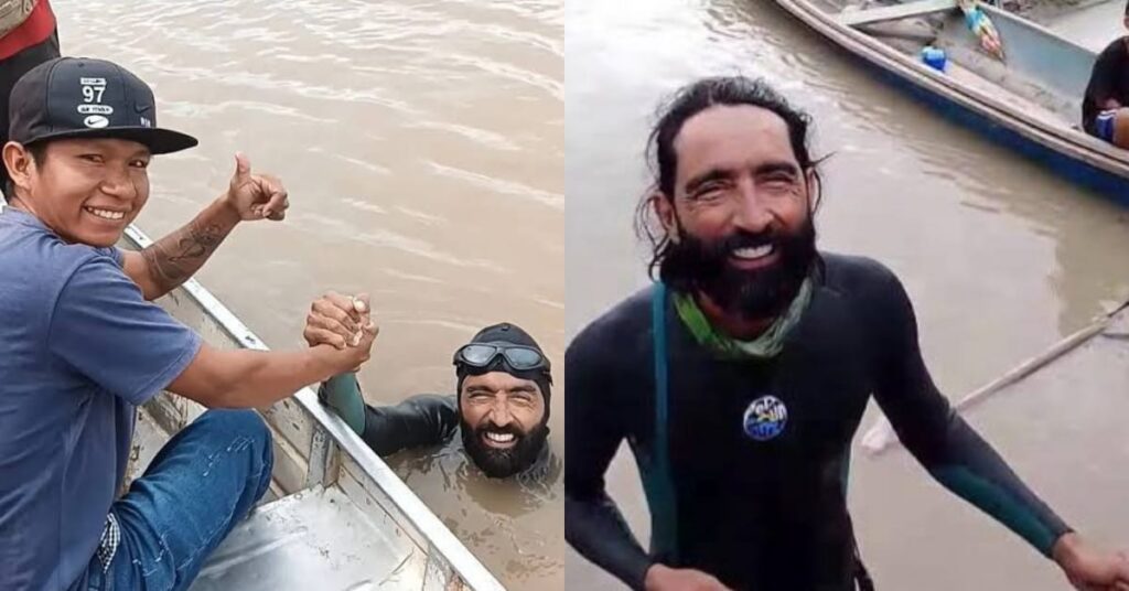 A viagem, feita inteiramente a nado, já soma mais de quatro mil quilômetros percorridos. O atleta partiu do Peru e pretende chegar a Belém, no Pará, completando um percurso superior a seis mil quilômetros.